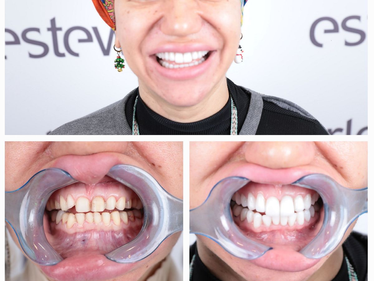 Door middel van facings hebben we haar de witte lach die haar zo mooi staat terug gegeven.